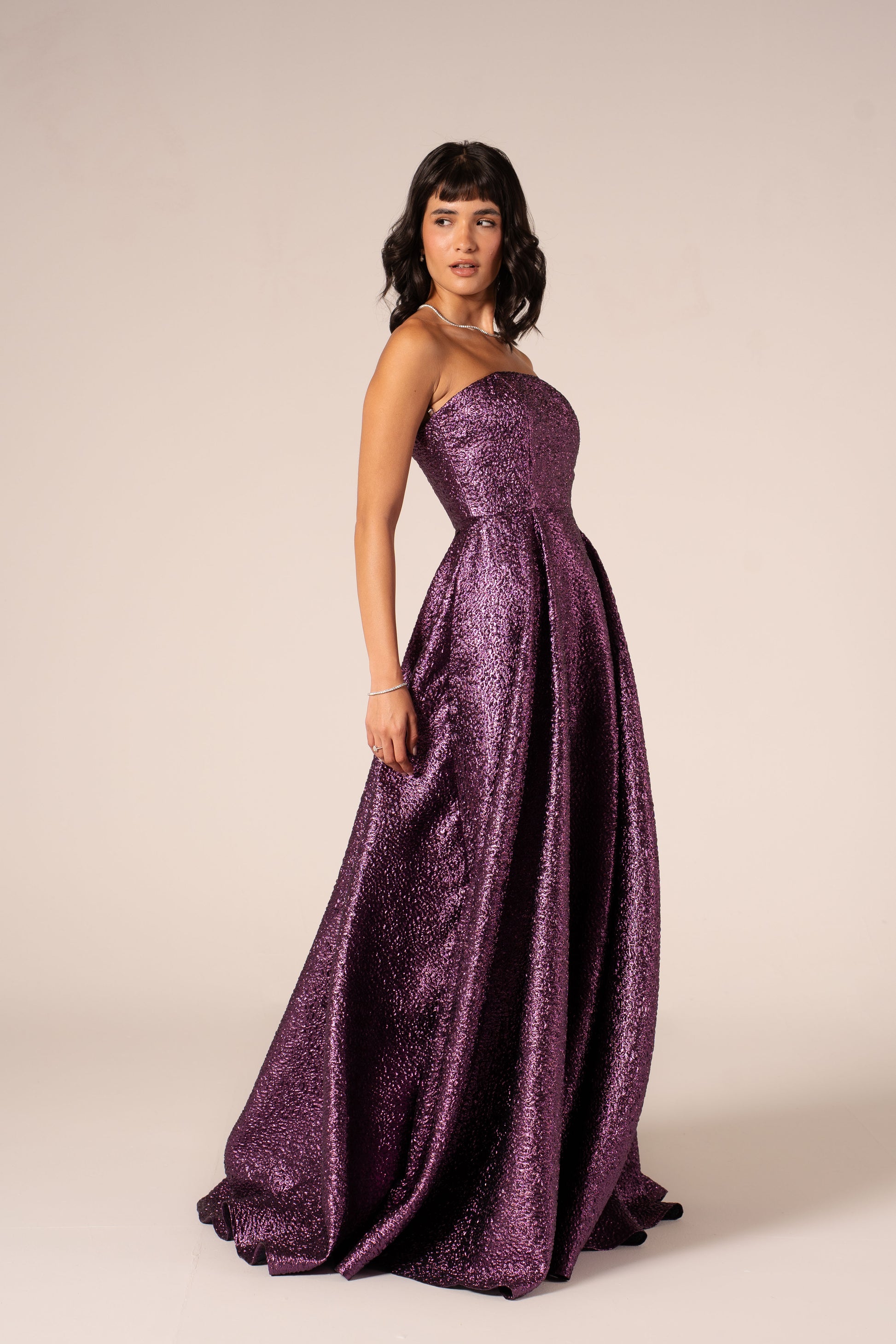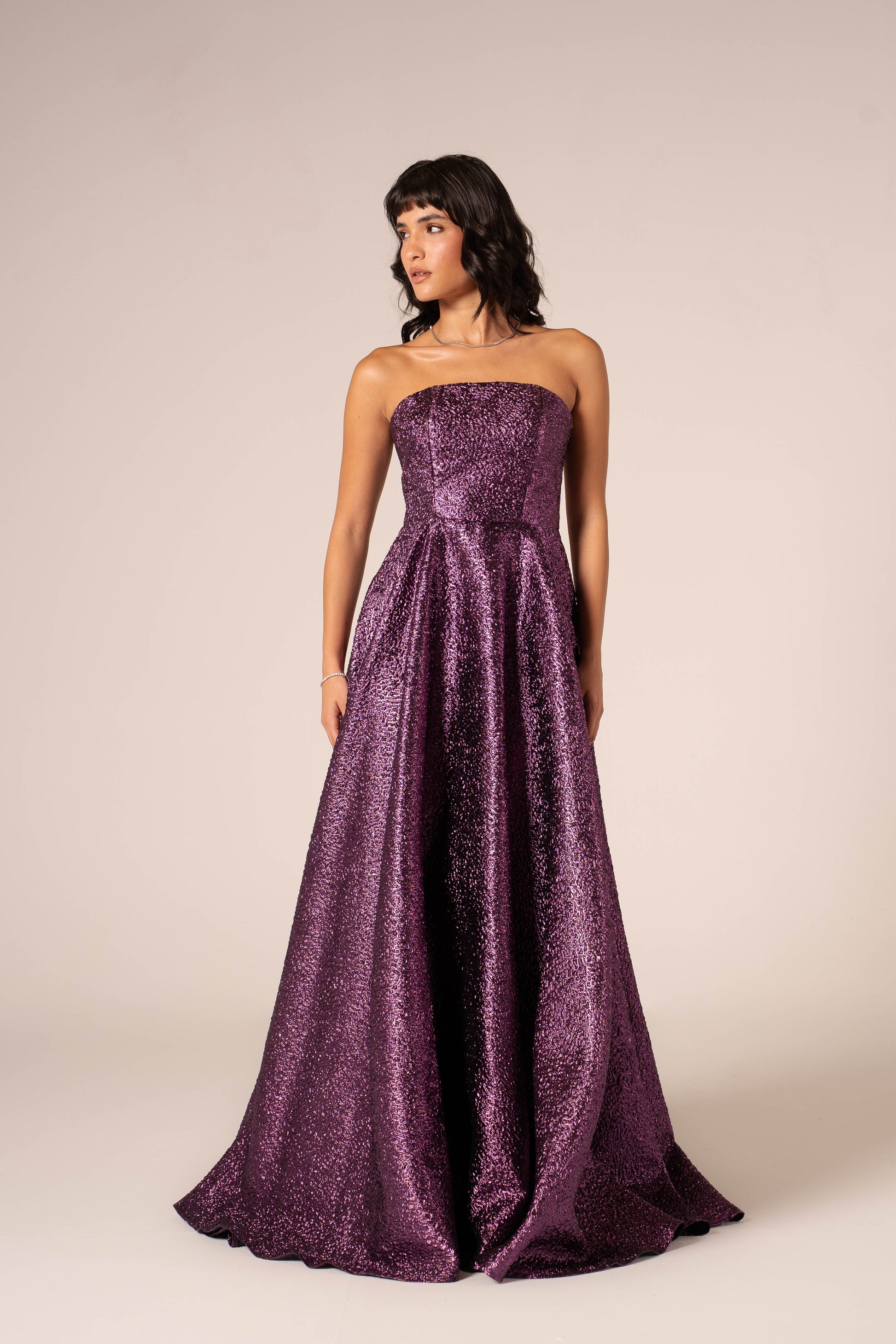 Elevate your evening elegance with Solenne, a stunning strapless maxi dress that commands attention. Crafted from luxurious sequined material, this gown shimmers with every movement, creating an enchanting play of light that ensures you'll be the focal point of any occasion. The sophisticated strapless neckline offers a timeless silhouette while the flowing maxi length provides graceful movement and refined sophistication. Perfect for galas, formal events, or unforgettable nights out, Solenne transforms you into the vision of glamour you deserve to be.