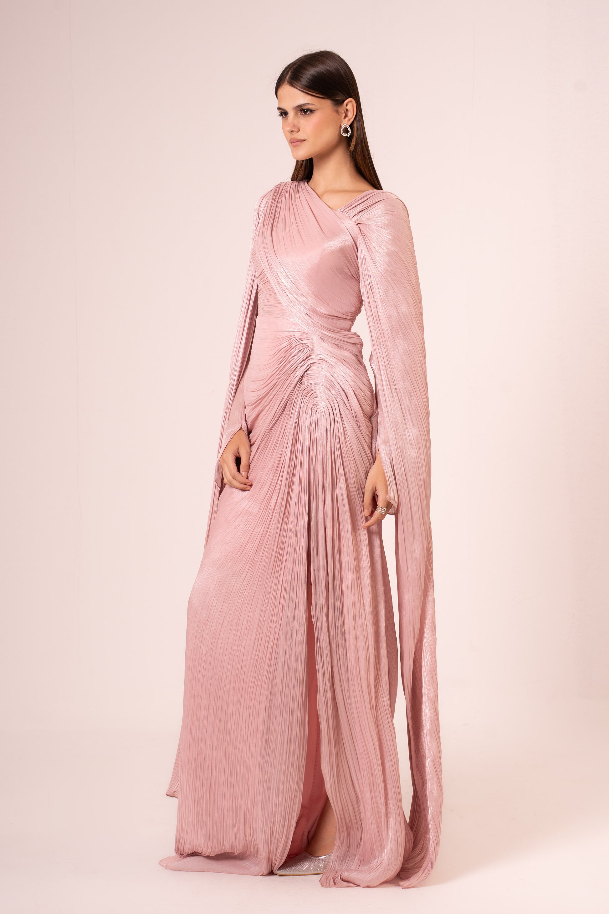Elegant one-shoulder maxi evening dress designed for sophisticated occasions. The flowing silhouette features a dramatic high slit for graceful movement, while the asymmetrical neckline creates a striking, modern look. Crafted from premium fabric that drapes beautifully, this dress transitions seamlessly from evening events to special celebrations. Perfect for those seeking timeless glamour with contemporary style.