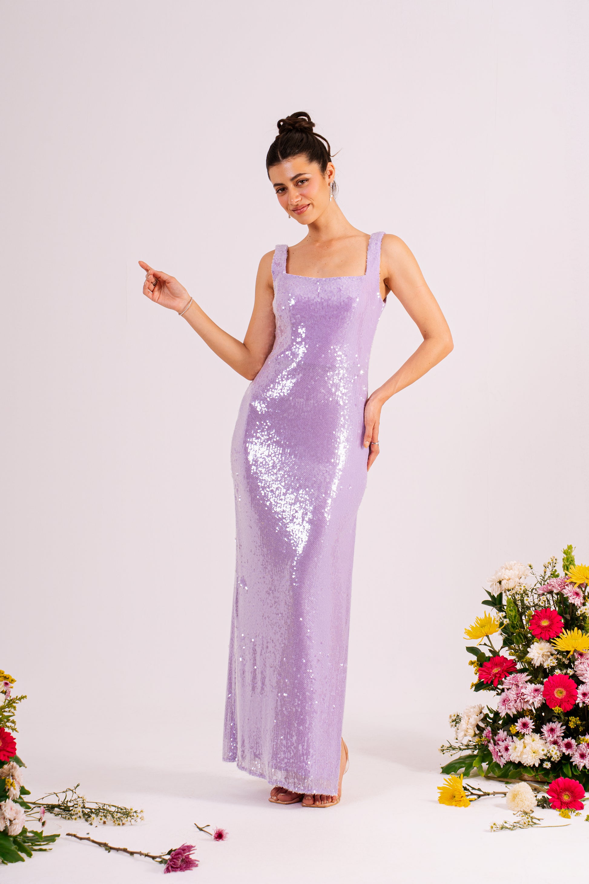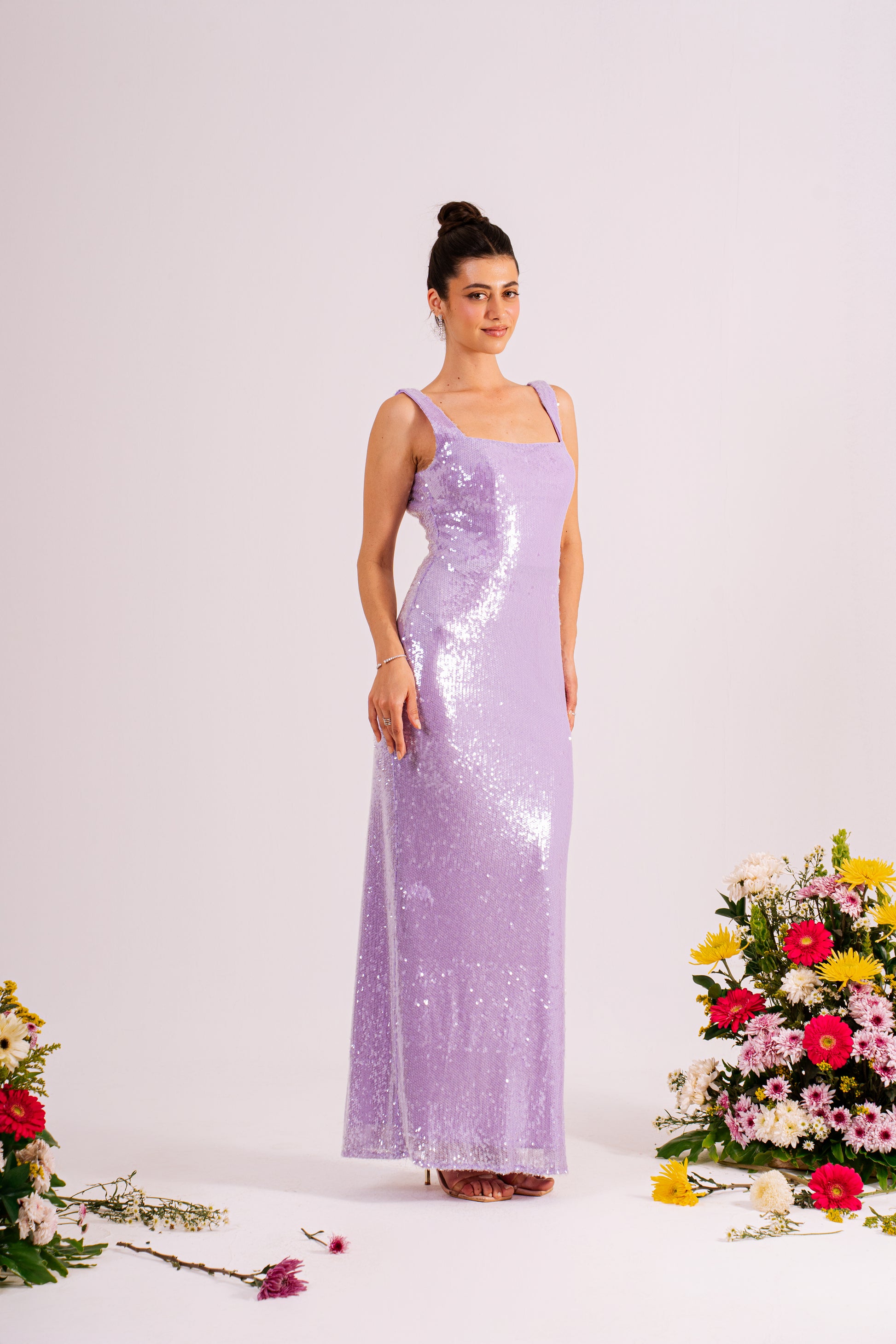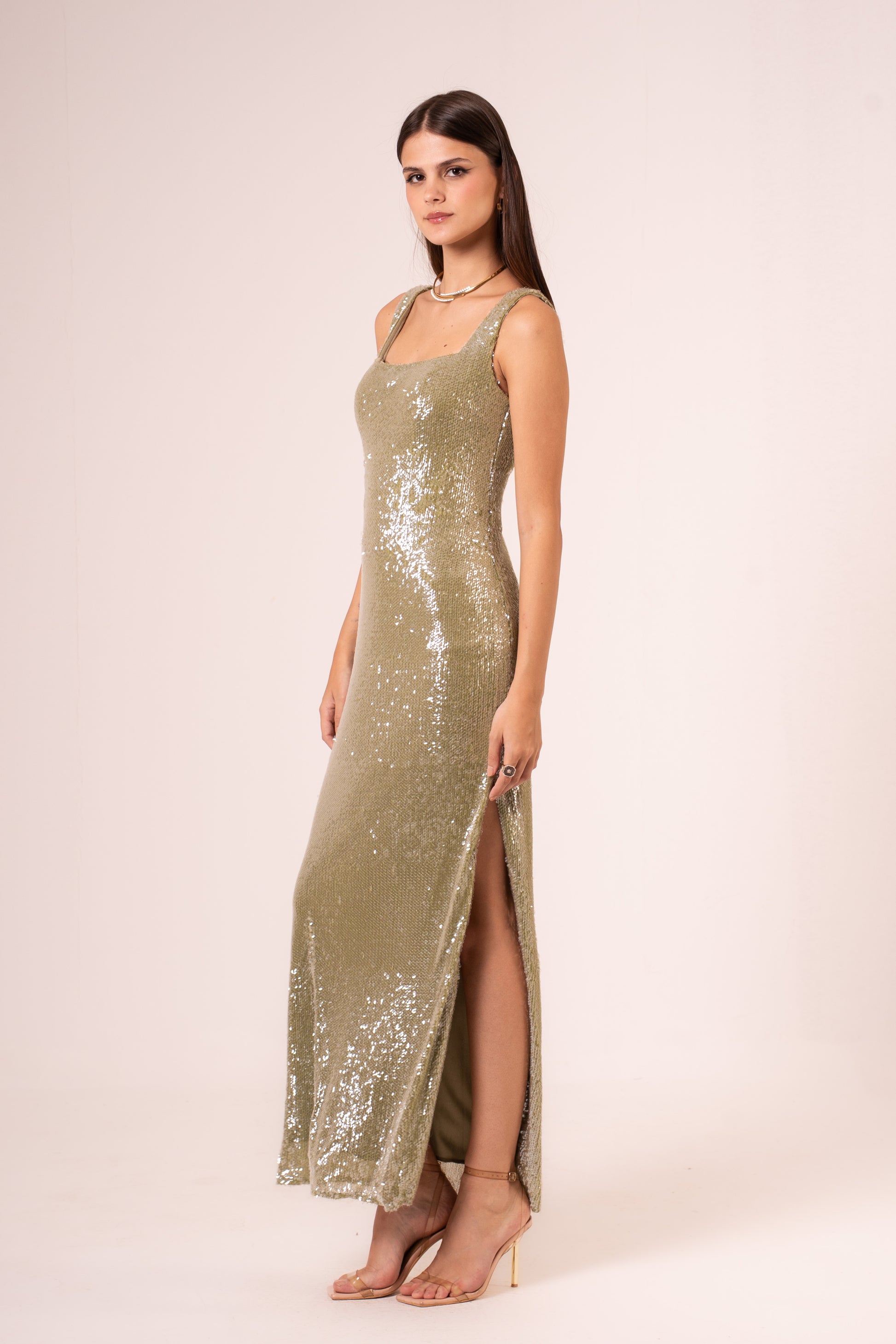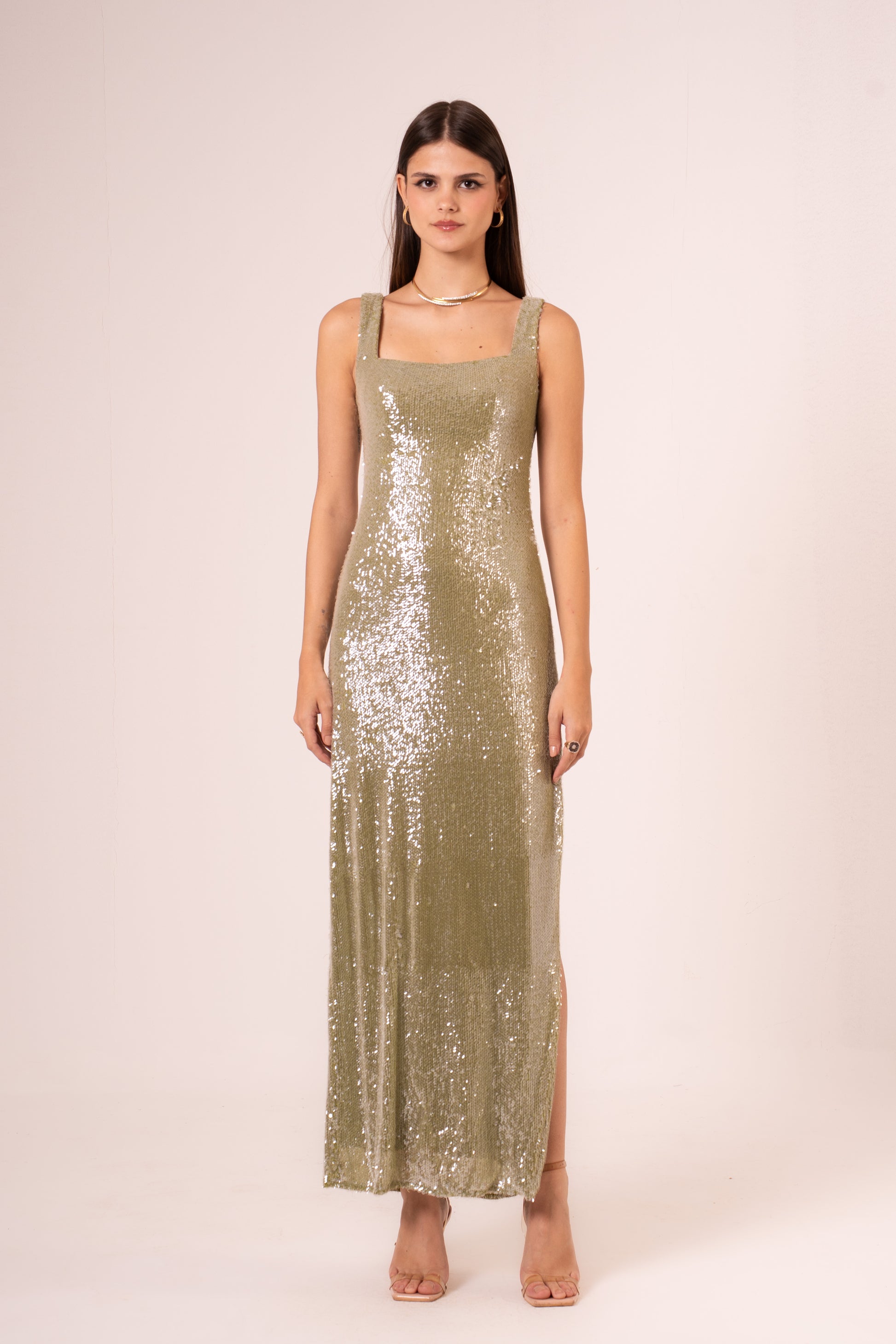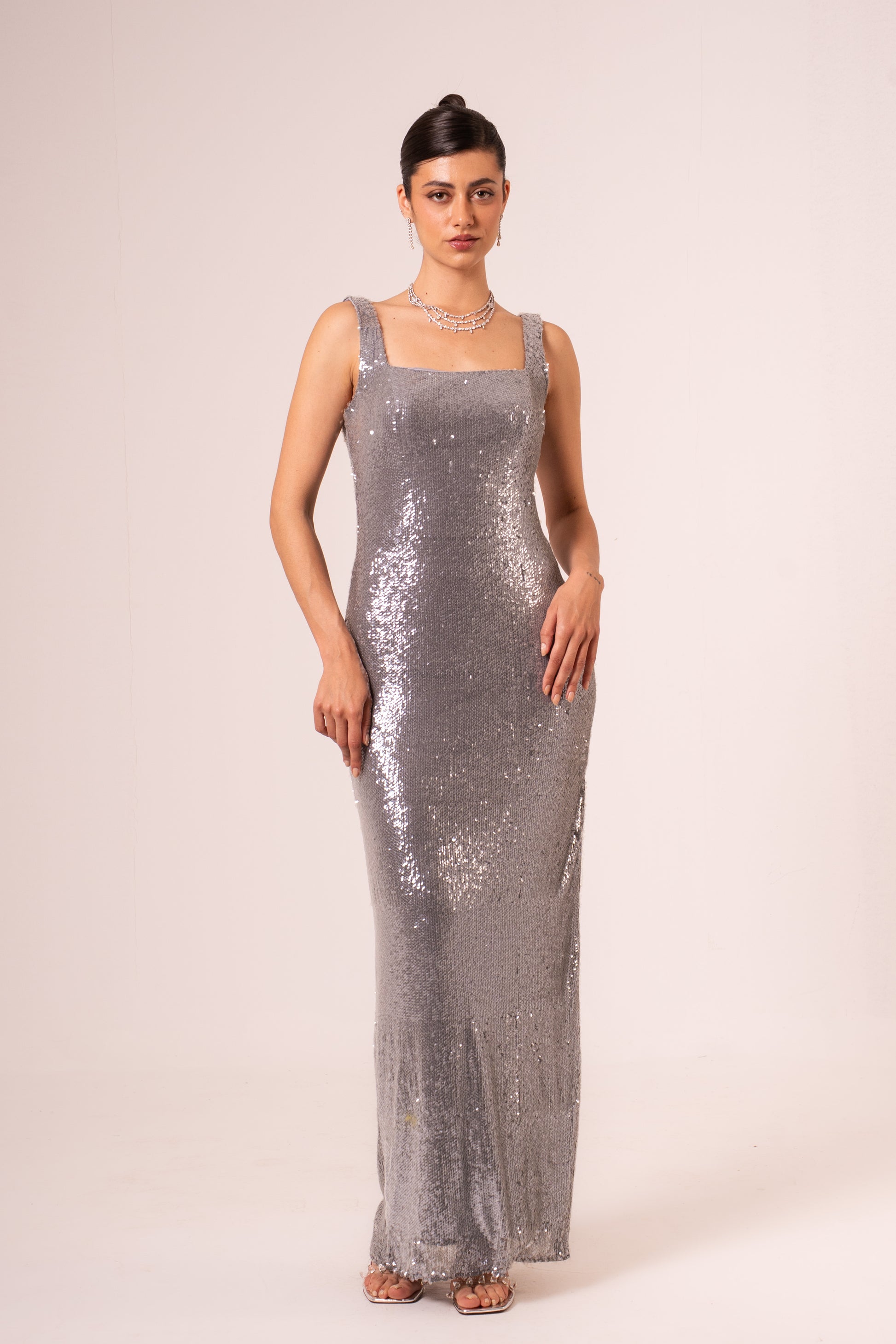 Elegant sleeveless maxi evening dress designed for sophisticated occasions. The flowing silhouette drapes gracefully from a fitted bodice, creating a timeless look that flatters all figures. Perfect for formal events, galas, and special celebrations. The maxi length provides understated glamour while the sleeveless design offers a refined, contemporary touch. Crafted for comfort and style, this dress transitions seamlessly from evening affairs to upscale gatherings.
