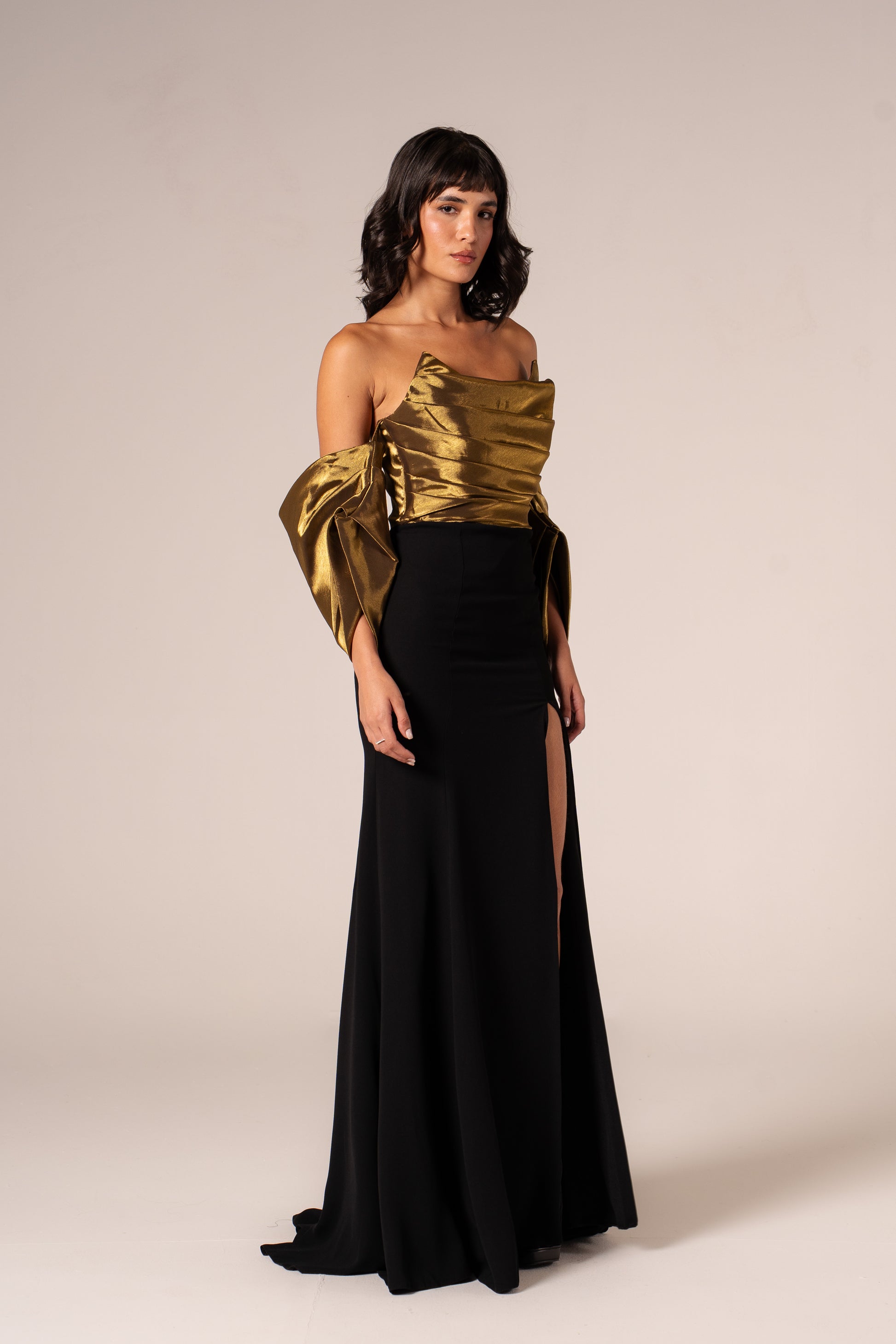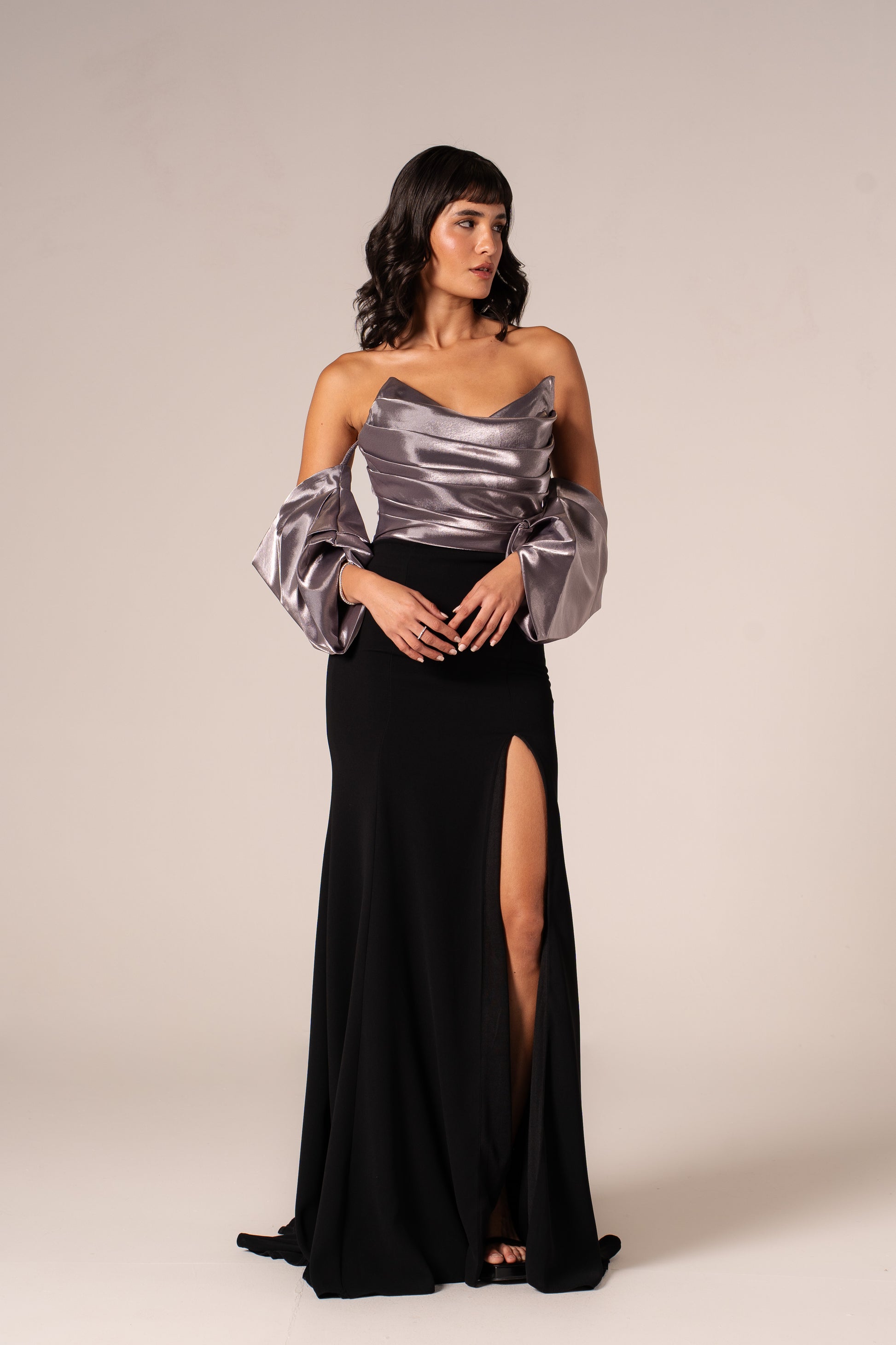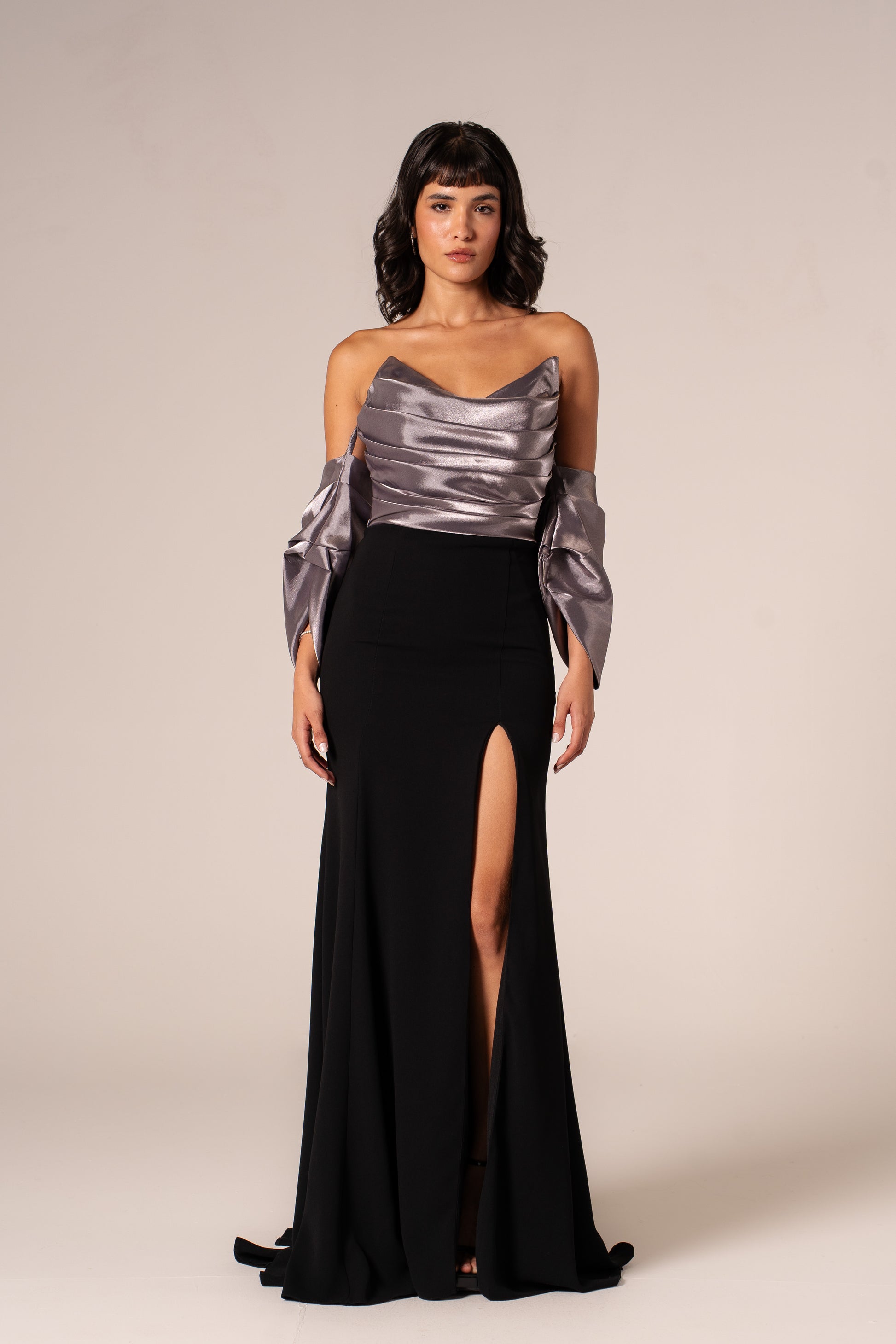 Ameliora captures timeless elegance with its graceful strapless silhouette and flowing maxi length. This sophisticated evening dress drapes beautifully from the shoulders, creating a romantic, flattering neckline that commands attention. The sweeping floor-length skirt moves with effortless grace, perfect for formal events, galas, or special occasions where you want to feel absolutely stunning. Crafted for those who appreciate refined style, Ameliora transforms any evening into an unforgettable moment.