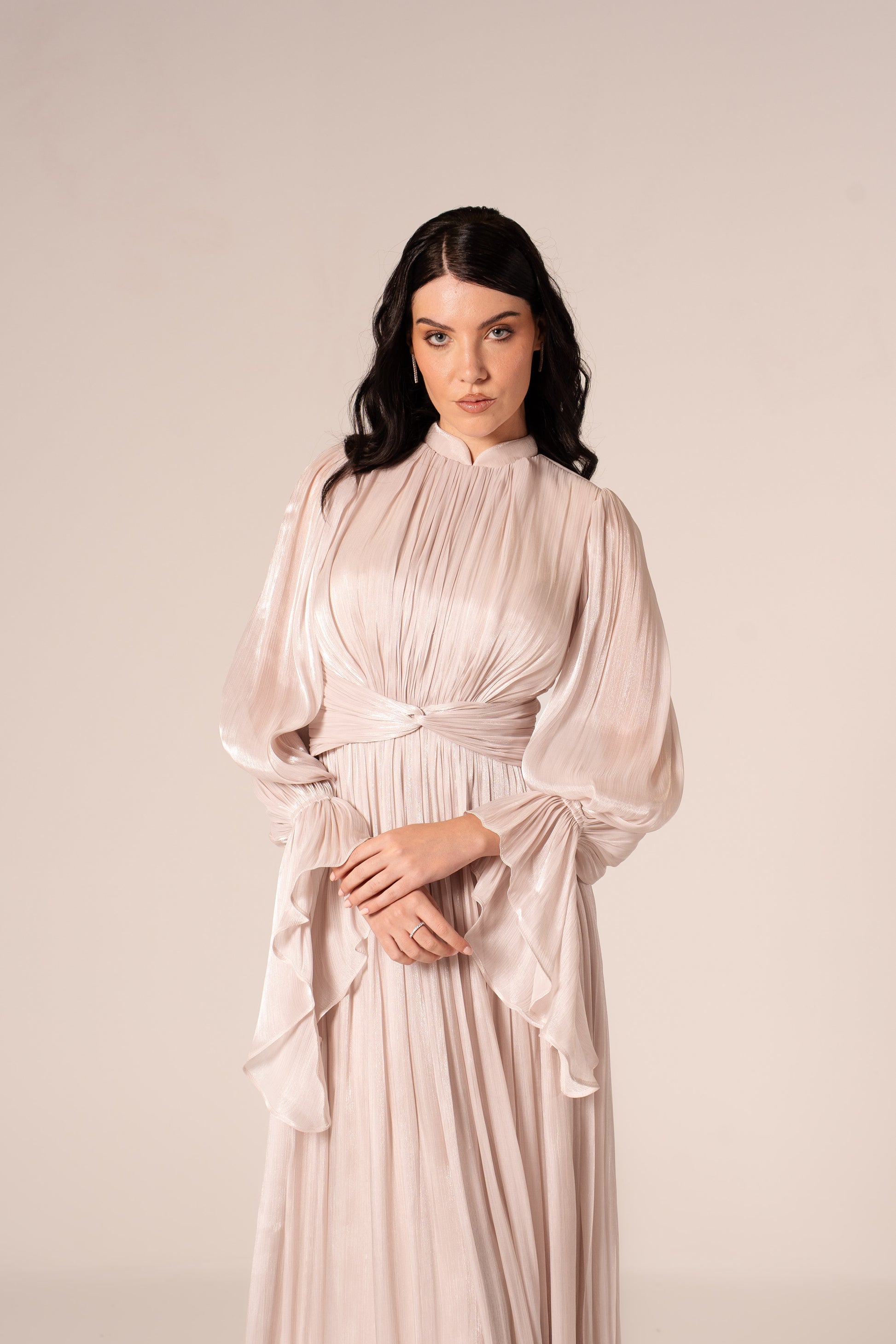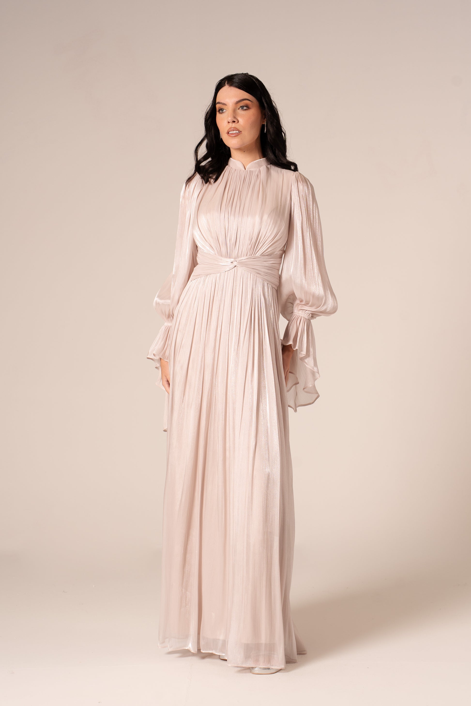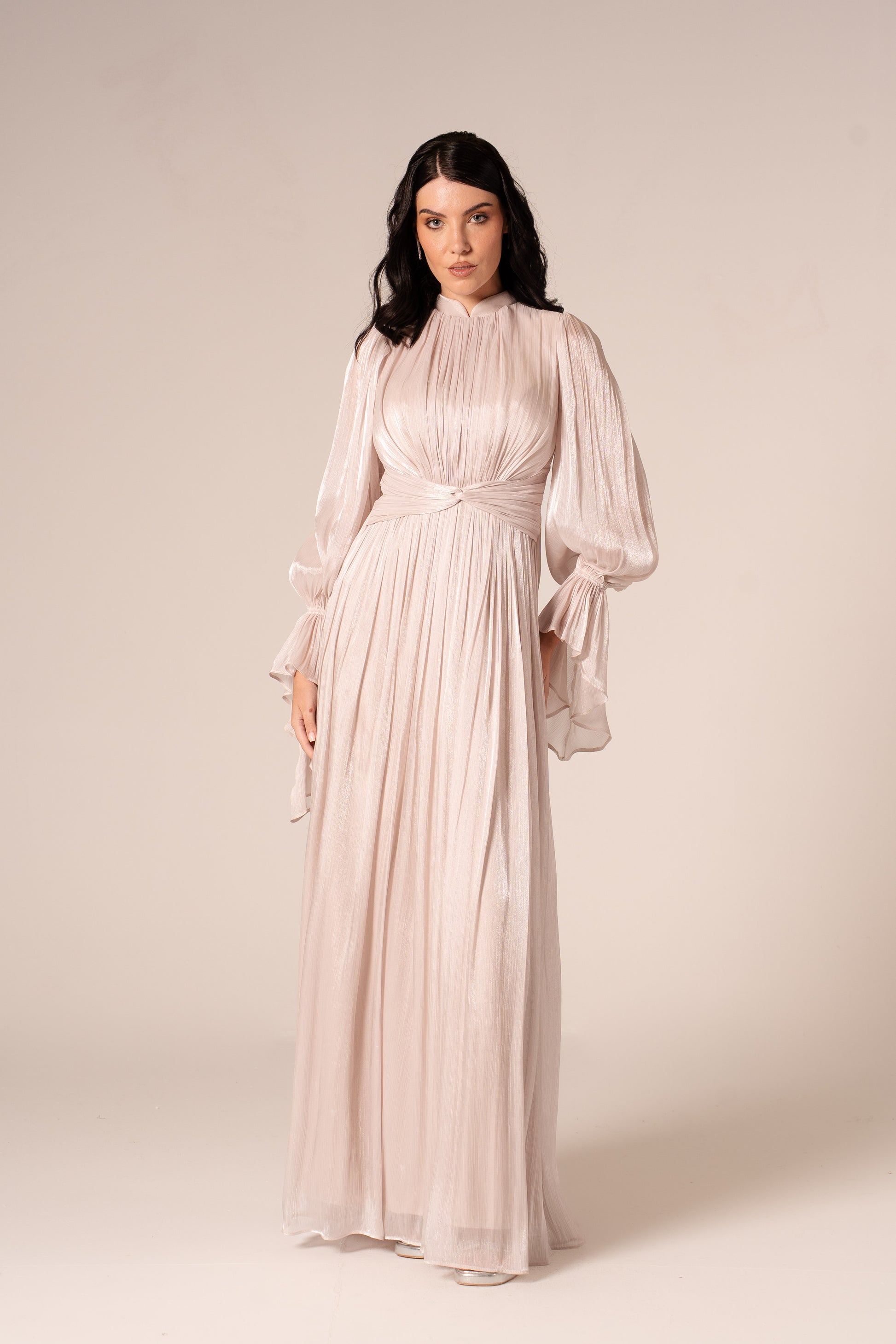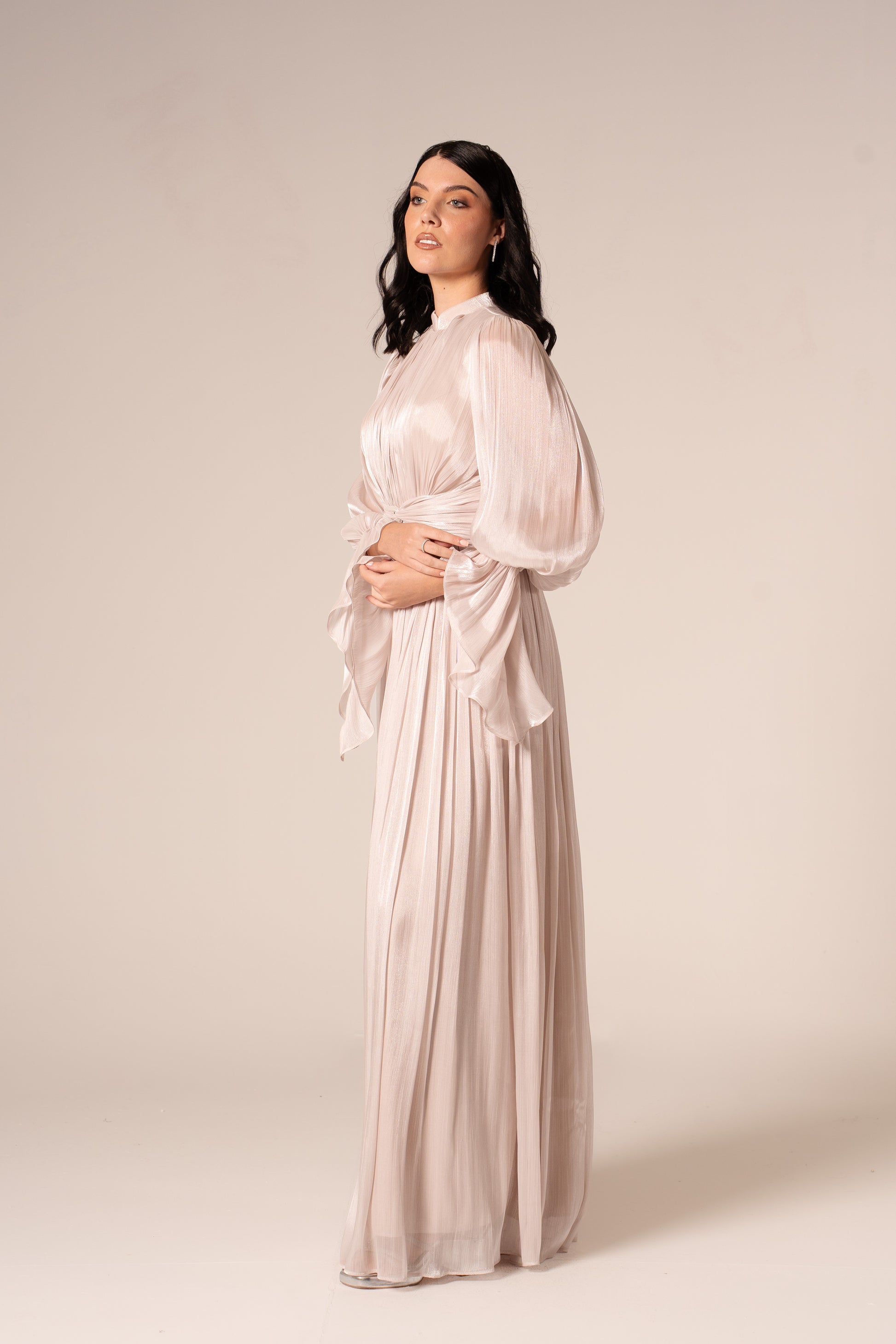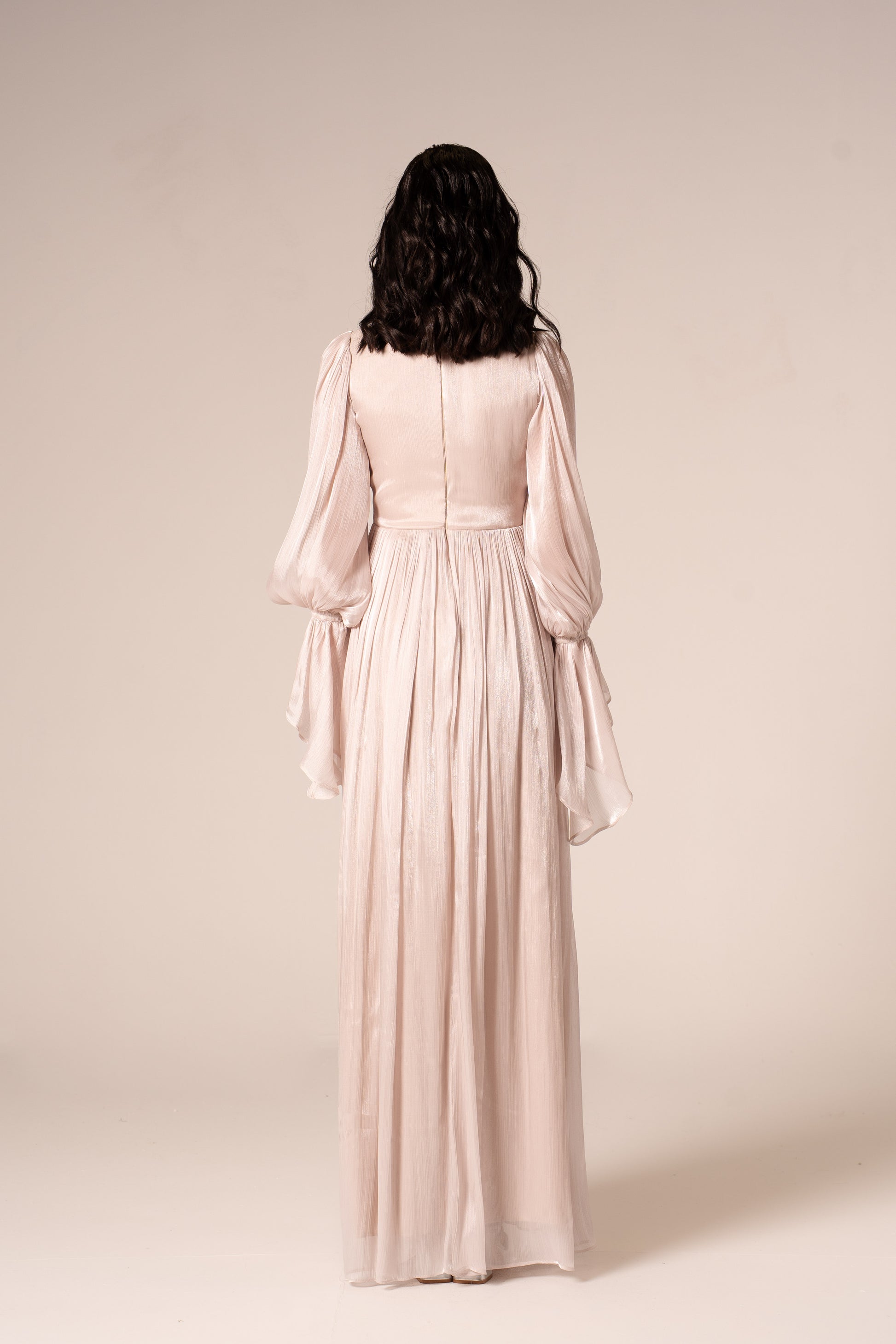 Azurine is an exquisite long sleeve maxi evening dress crafted from delicate organza material, designed to make you feel absolutely radiant at any formal occasion. The flowing silhouette drapes elegantly from shoulder to floor, while the sheer organza fabric creates an ethereal, sophisticated look that catches light beautifully. Long sleeves provide graceful coverage and timeless elegance, making this dress perfect for evening galas, weddings, or upscale celebrations. The lightweight organza ensures comfortable movement throughout the night without compromising on style or refinement. Whether you're attending a special event or want to elevate your evening wardrobe, Azurine delivers the perfect blend of luxury and grace that will have you turning heads.