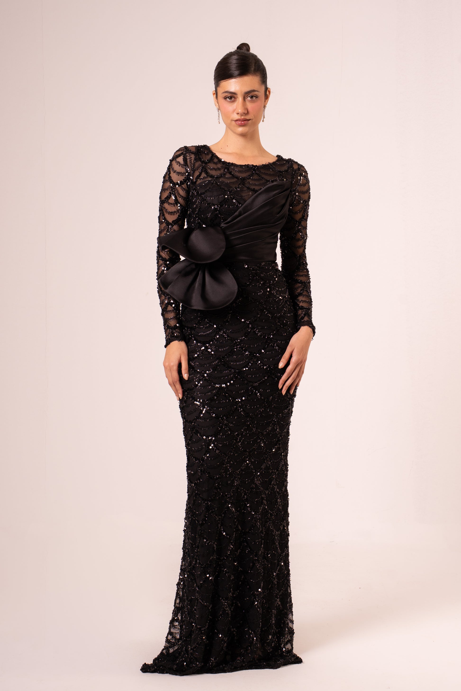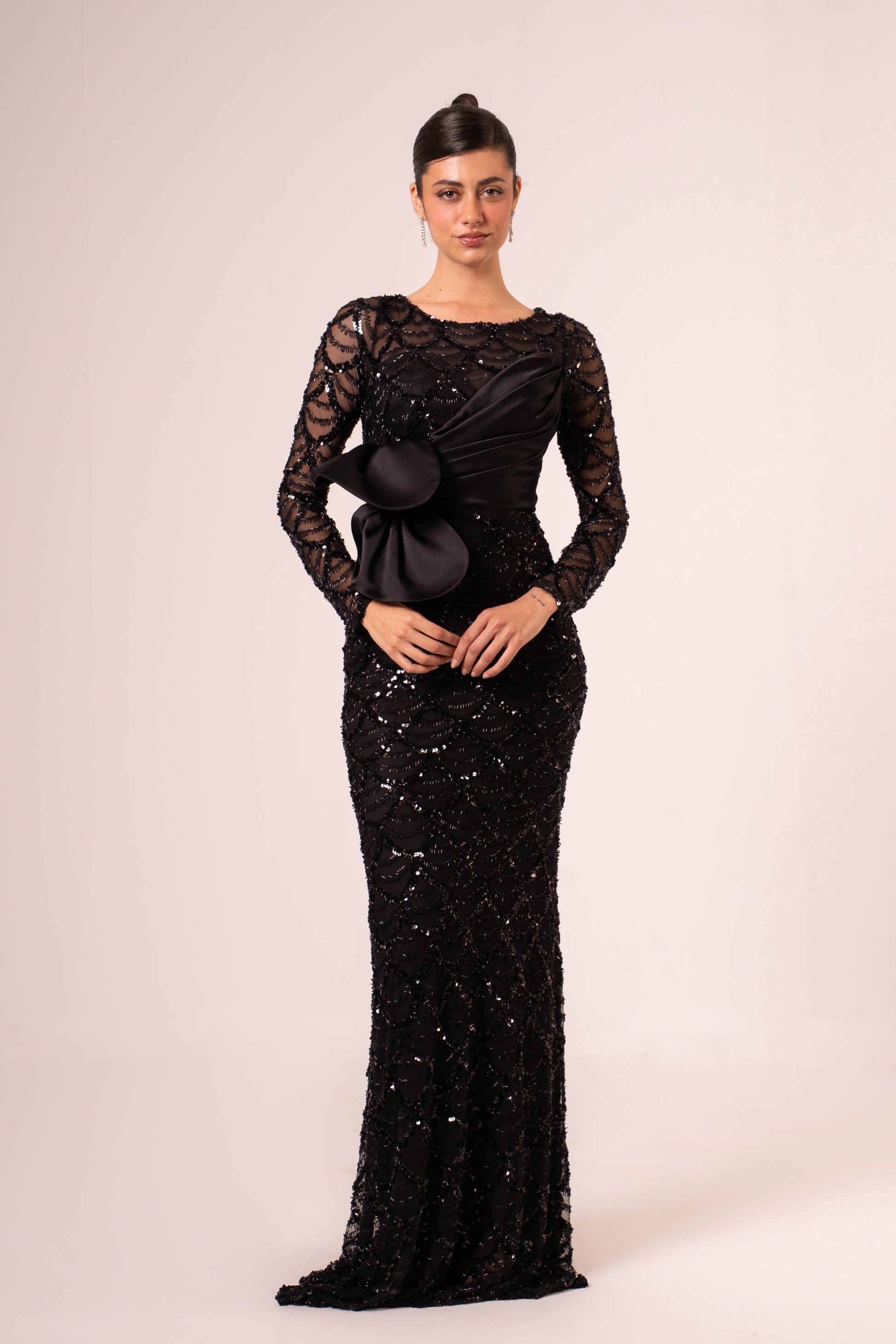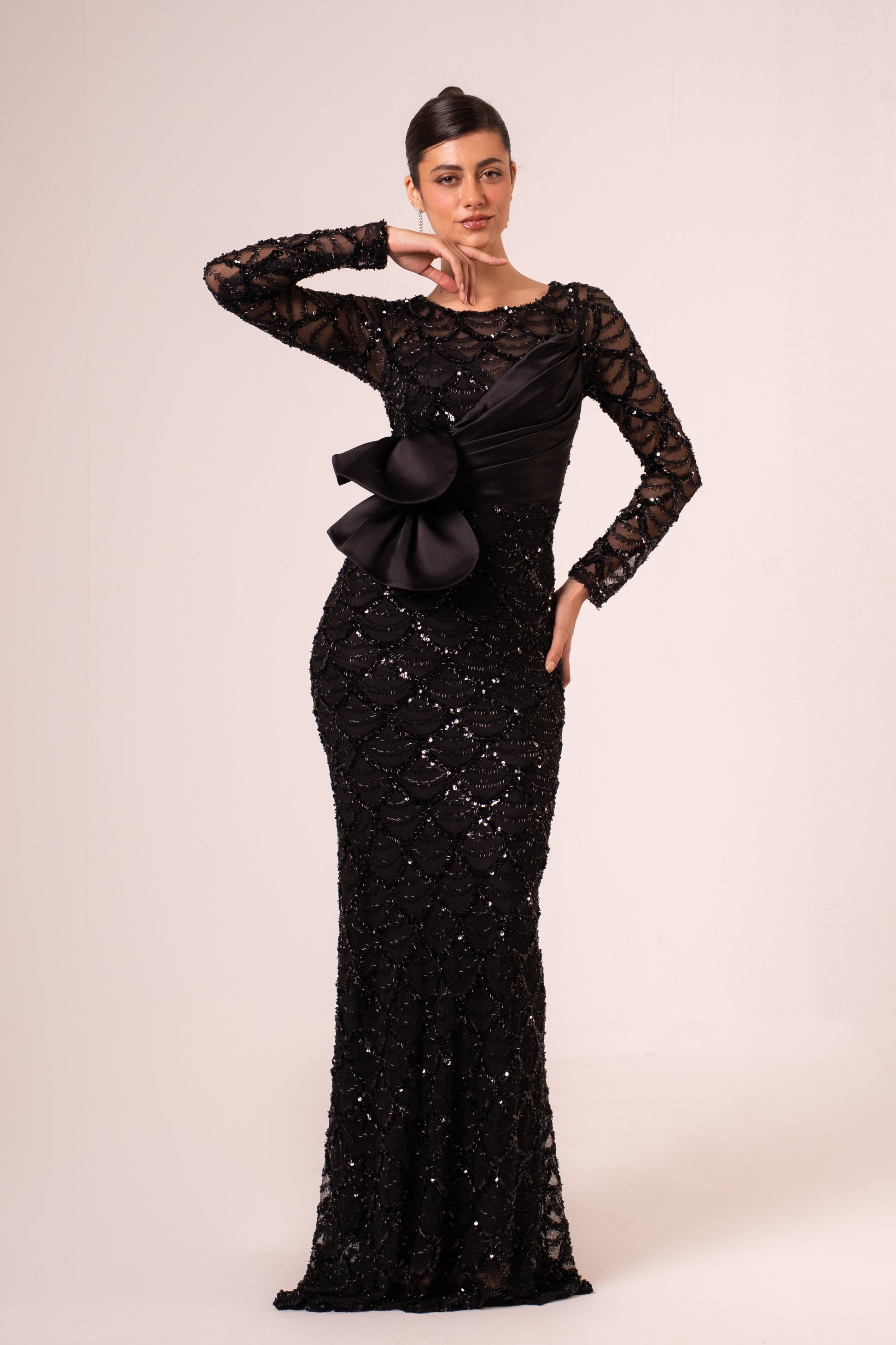 Hedaya is an elegant long-sleeved sequined maxi evening dress designed for those special occasions when you want to shine. The shimmering sequin detailing catches light beautifully, creating a glamorous effect perfect for formal events, galas, and celebrations. The flowing maxi silhouette offers grace and sophistication, while the long sleeves provide modest coverage with timeless appeal. Crafted for comfort and style, this dress makes a stunning statement whether you're attending a wedding, gala, or evening celebration. Perfect for creating unforgettable moments in understated luxury.