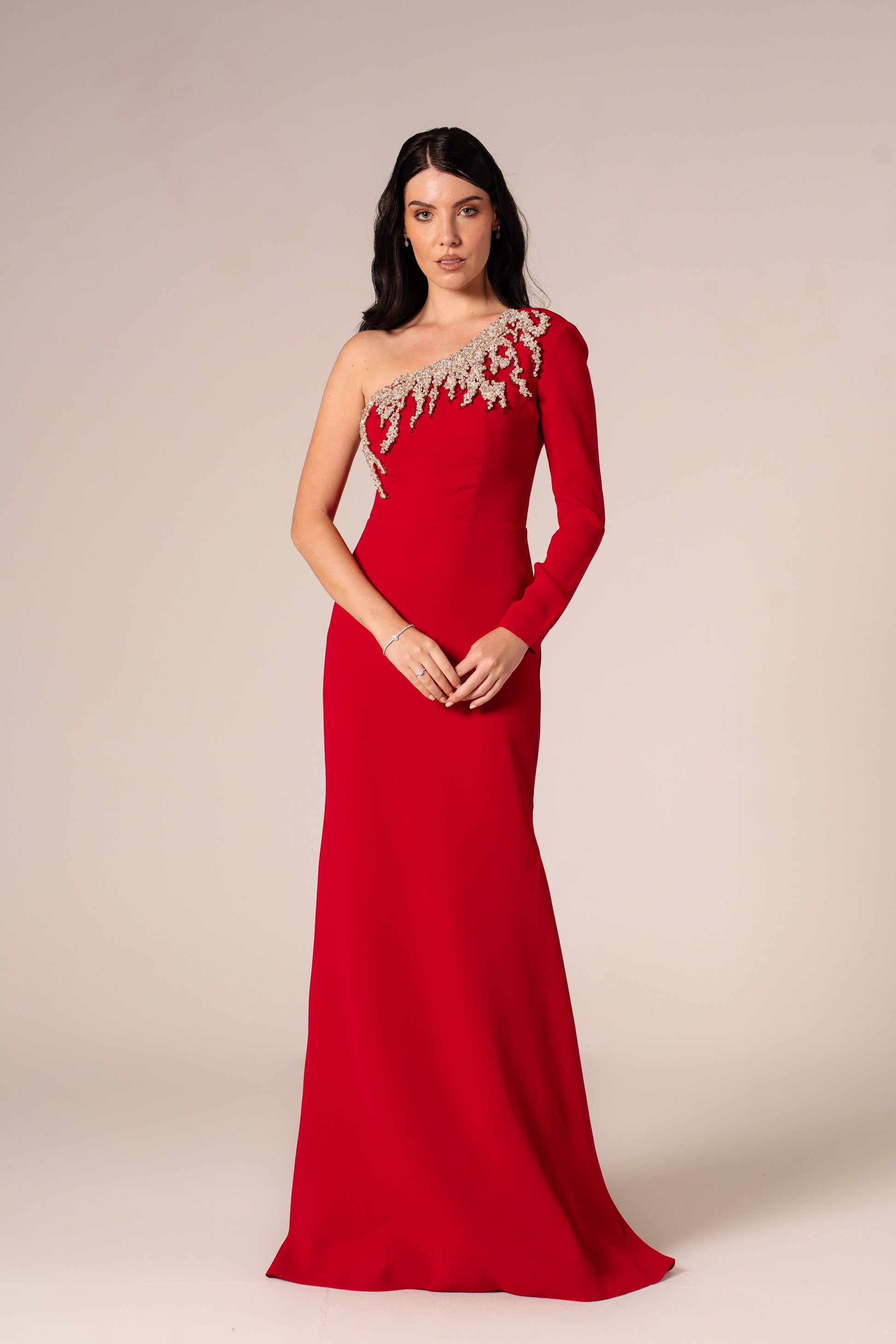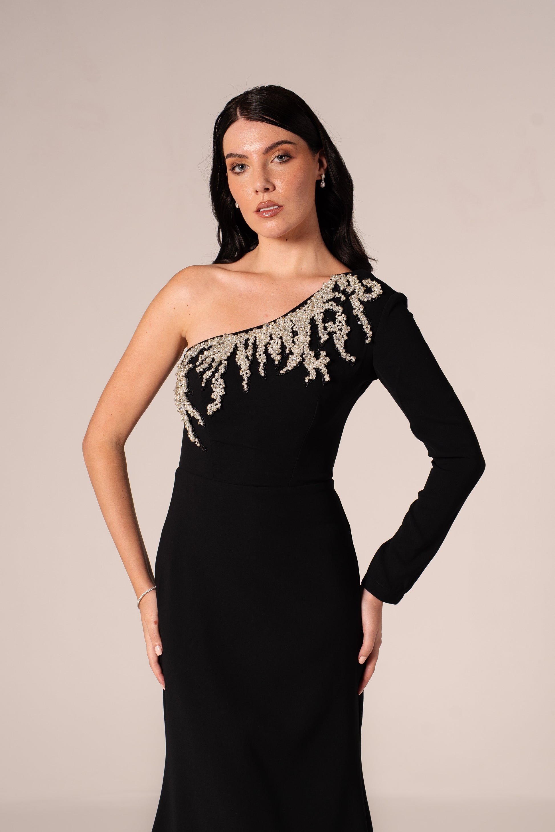 Elevate your evening with Melisande, a stunning one-shoulder maxi dress that commands attention. The asymmetrical neckline creates an effortlessly sophisticated silhouette, while the flowing maxi length offers graceful movement and timeless elegance. Perfect for galas, formal dinners, or special celebrations, this dress combines modern design with classic glamour. The single-shoulder cut flatters your frame while making a bold fashion statement. Whether you're the guest of honor or turning heads on the dance floor, Melisande delivers the confidence and allure every memorable night deserves.