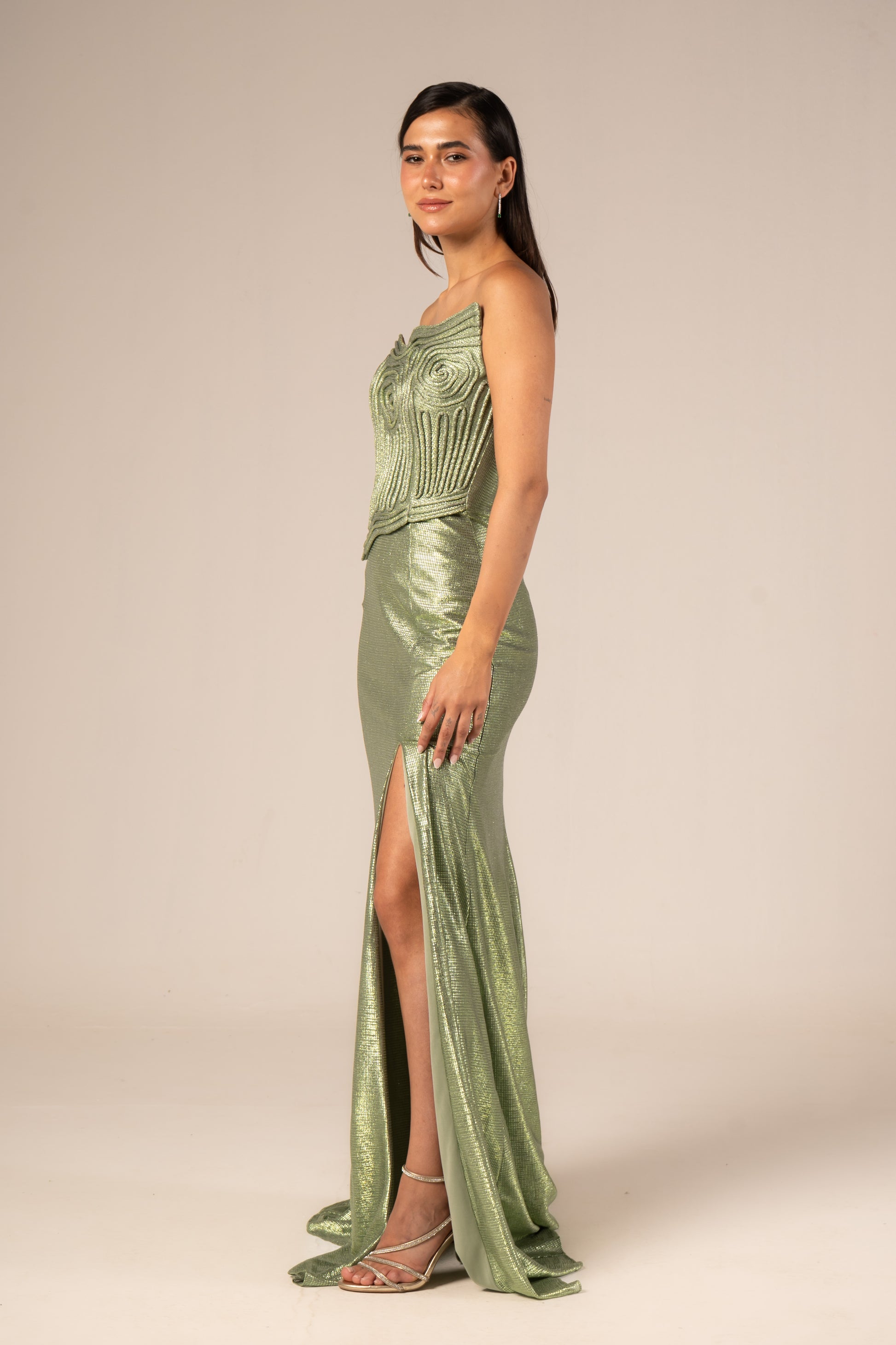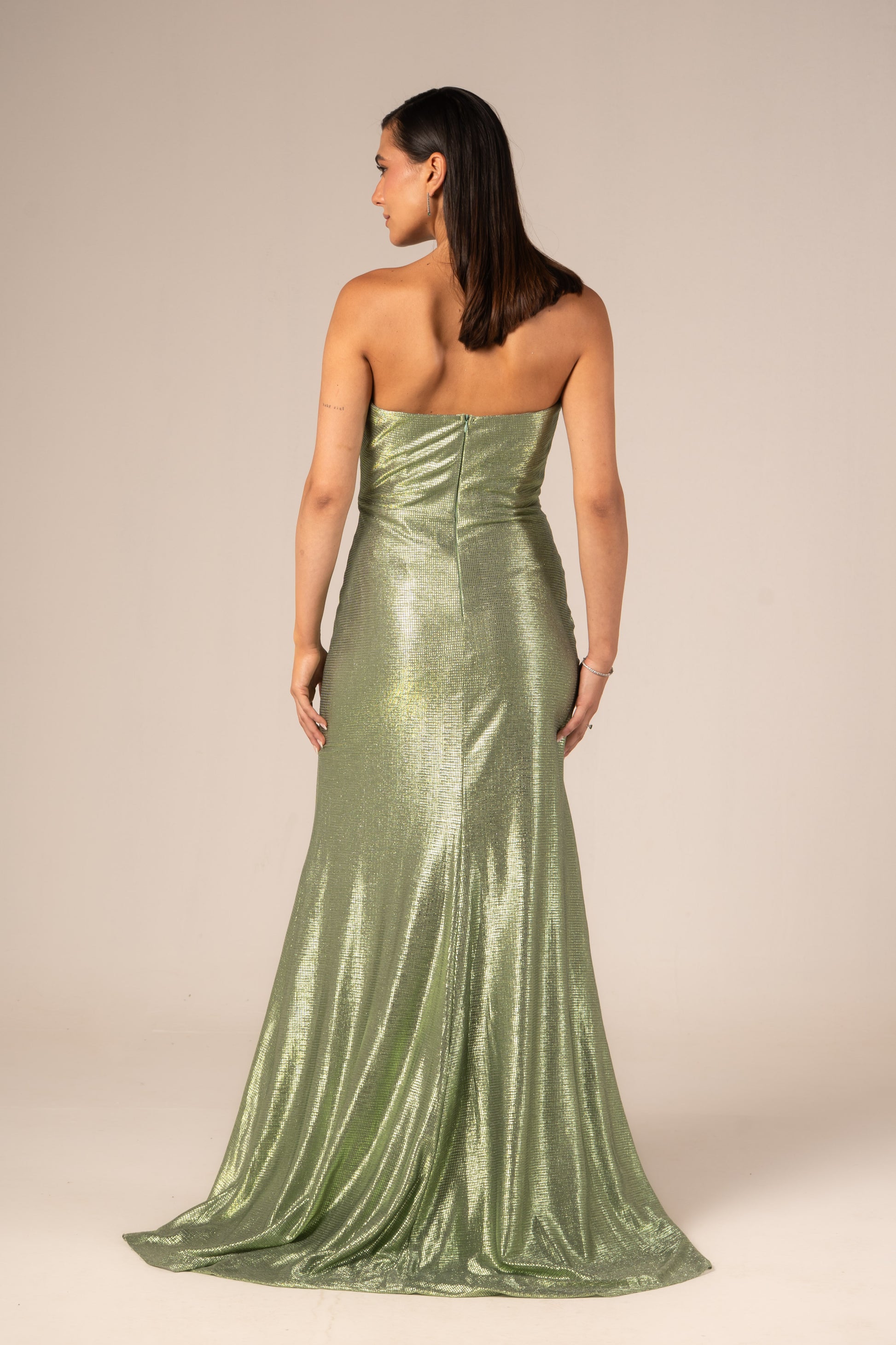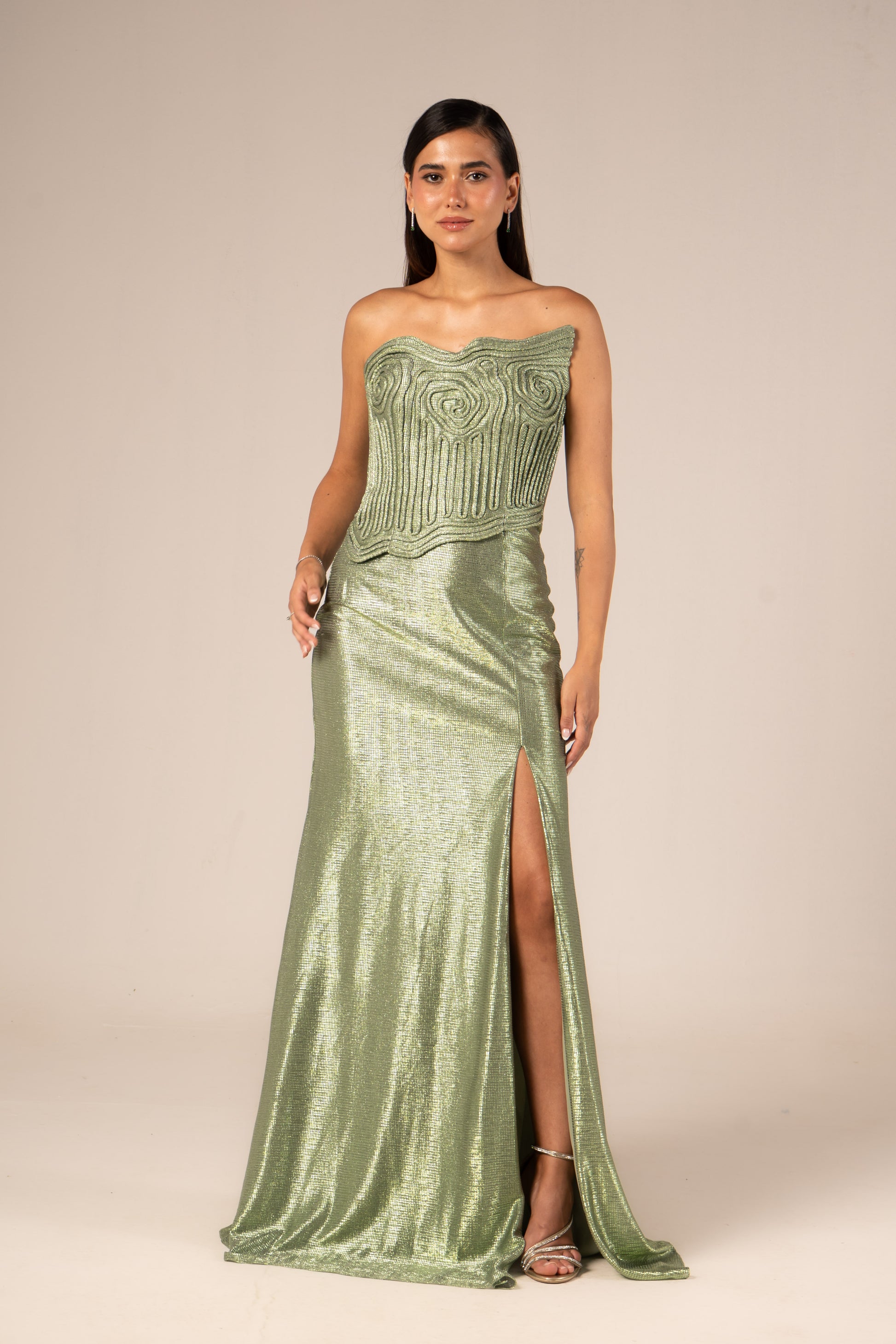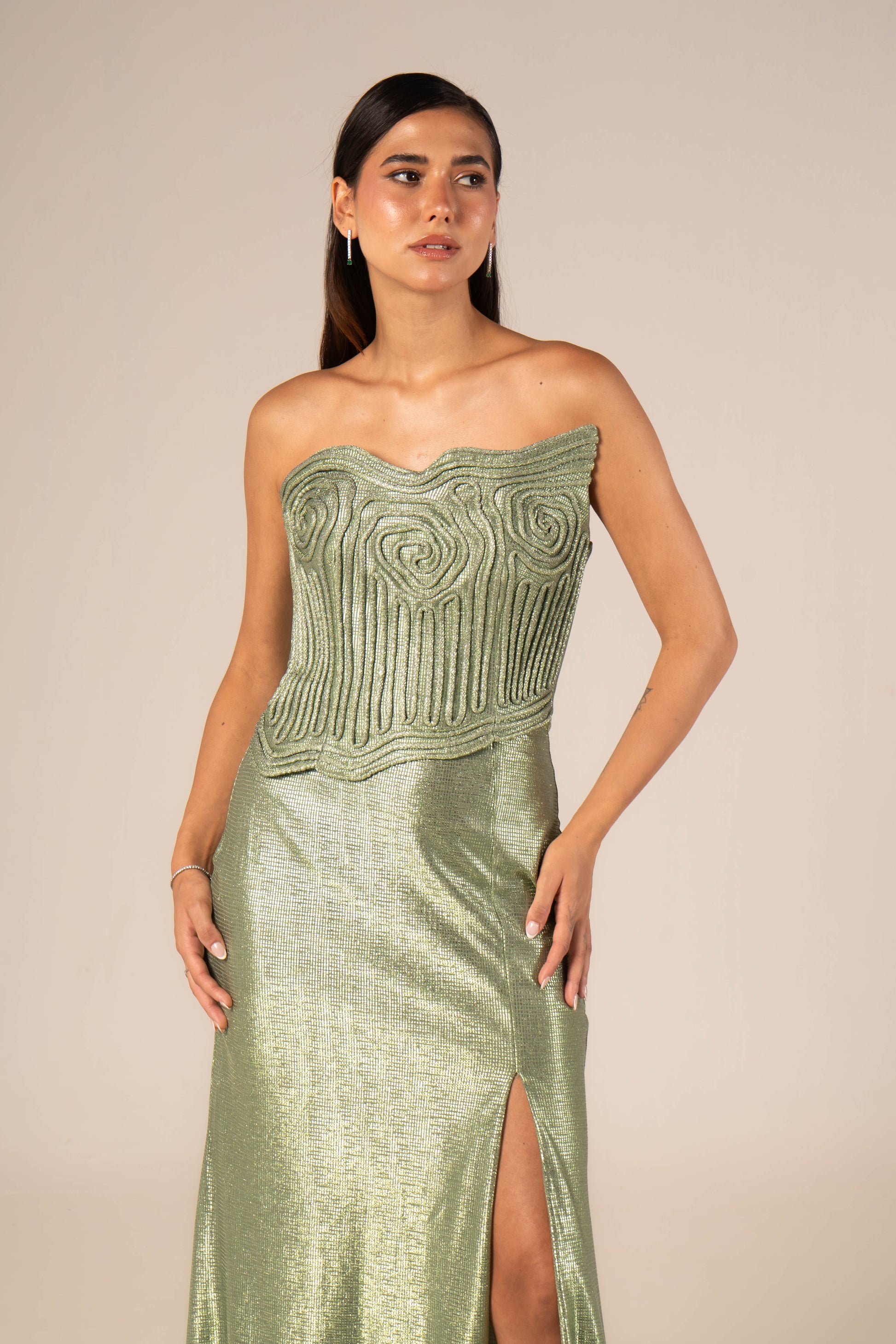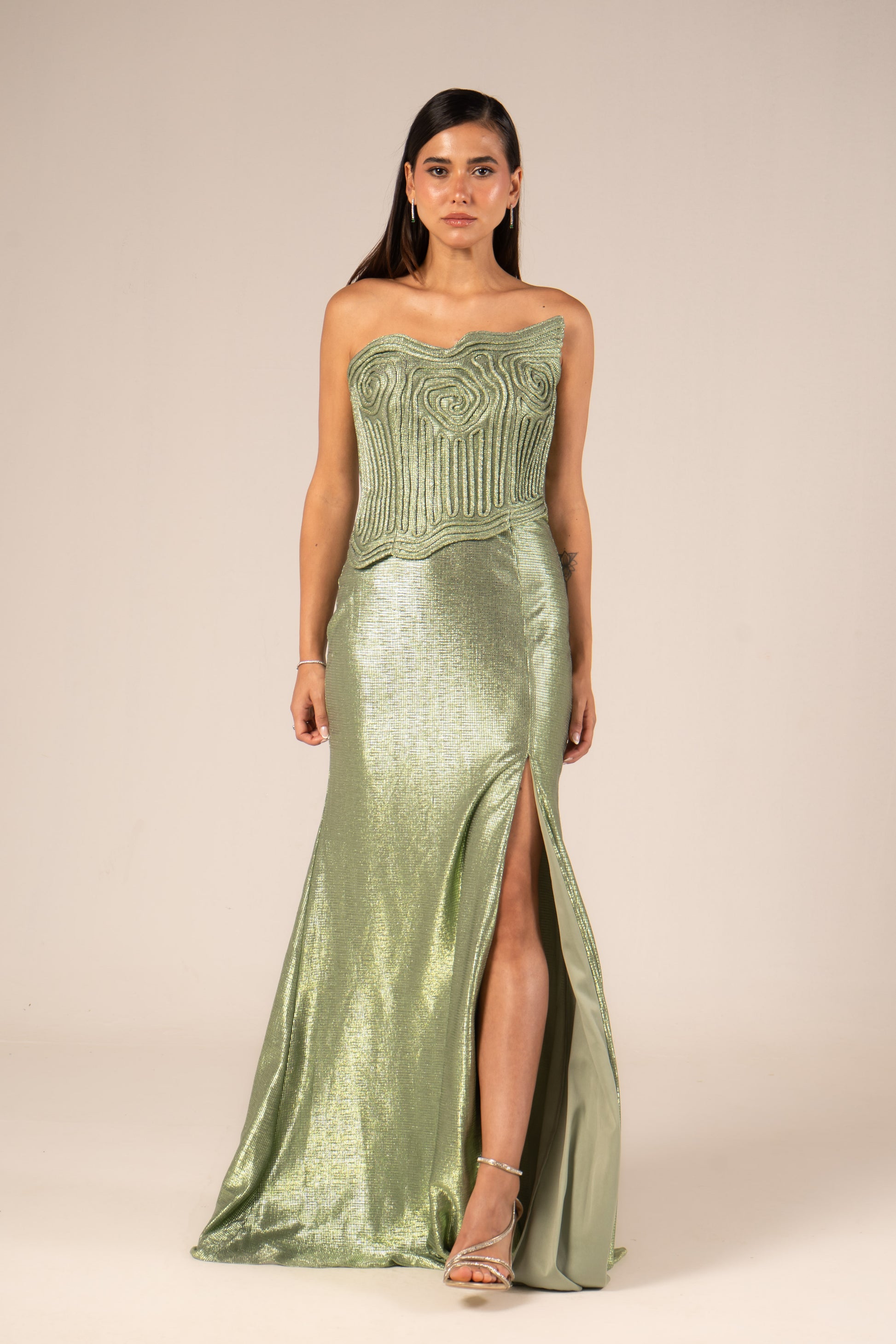 Elevate your evening elegance with the Miravelle, a stunning strapless maxi dress designed to turn heads. The sweetheart neckline frames your shoulders beautifully while the flowing maxi silhouette creates an effortlessly sophisticated look. A daring high slit adds movement and allure, allowing you to stride with confidence. Perfect for galas, weddings, or upscale events, this dress combines timeless glamour with modern edge. The structured bodice ensures a flattering fit all night long, while the luxurious fabric drapes gracefully to the floor. Make a memorable entrance in the Miravelle—where classic elegance meets contemporary style.