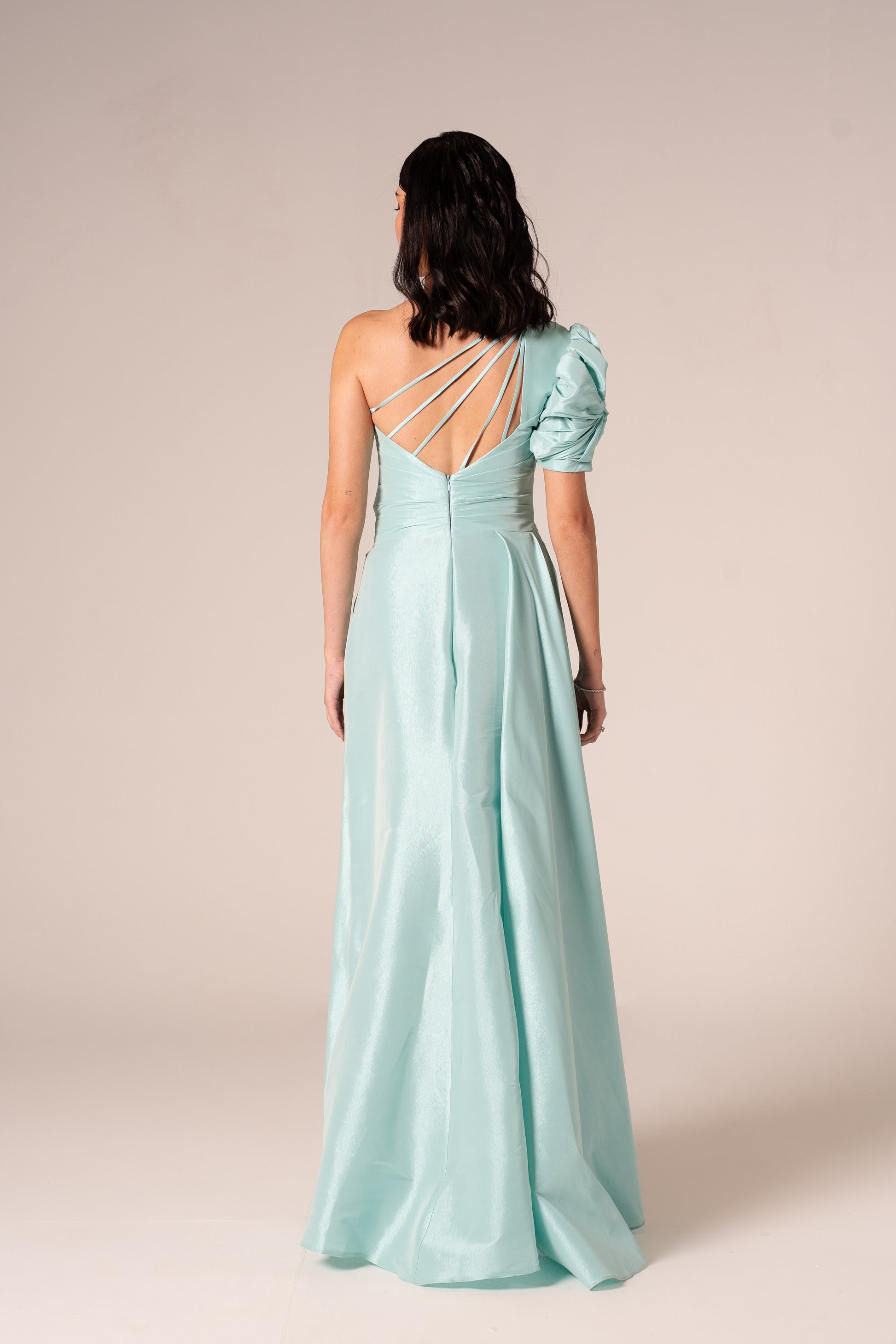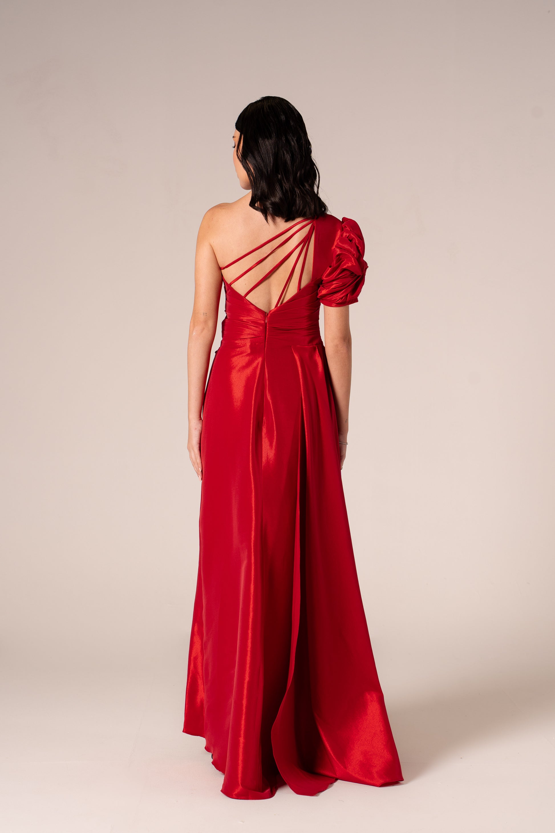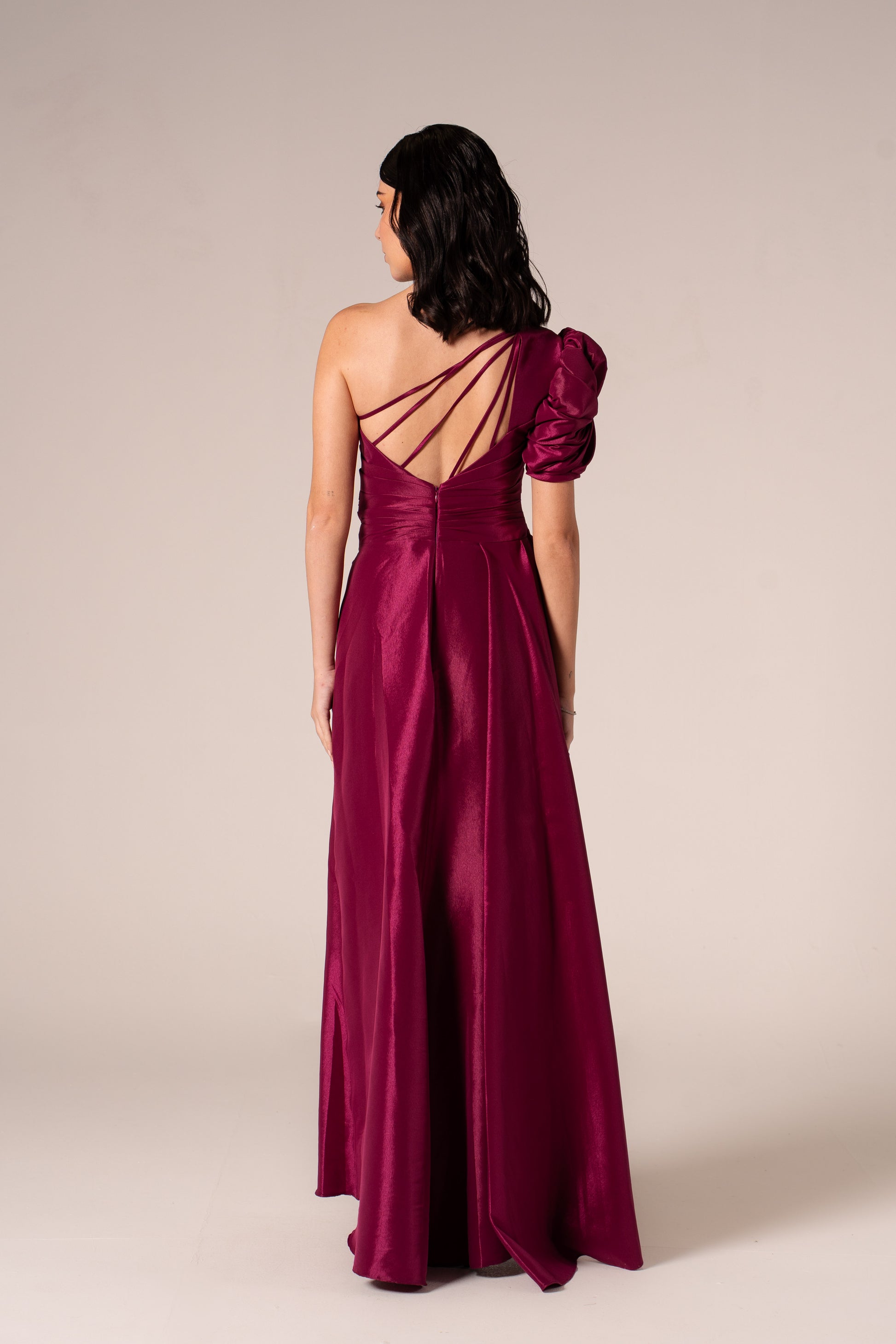 Elevate your evening elegance with Venetia, a stunning one-shoulder maxi dress designed to turn heads. The dramatic high slit adds movement and sophistication, while the asymmetrical neckline creates a flattering, modern silhouette. Crafted for those who dare to make a statement, this dress seamlessly transitions from formal events to upscale celebrations. The flowing maxi length ensures timeless glamour, while the strategic design details provide both comfort and confidence. Perfect for anyone seeking a show-stopping piece that balances classic refinement with contemporary allure.