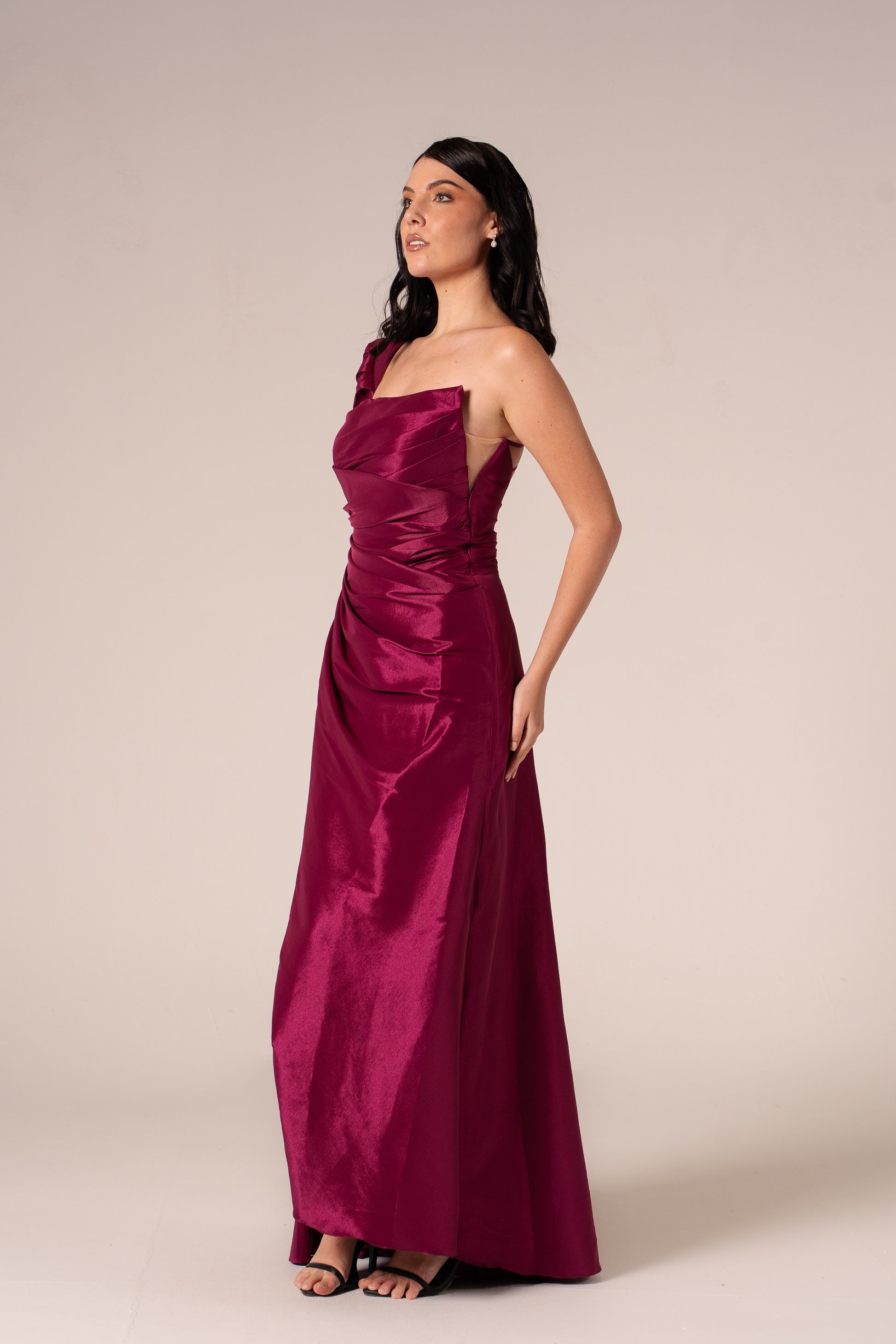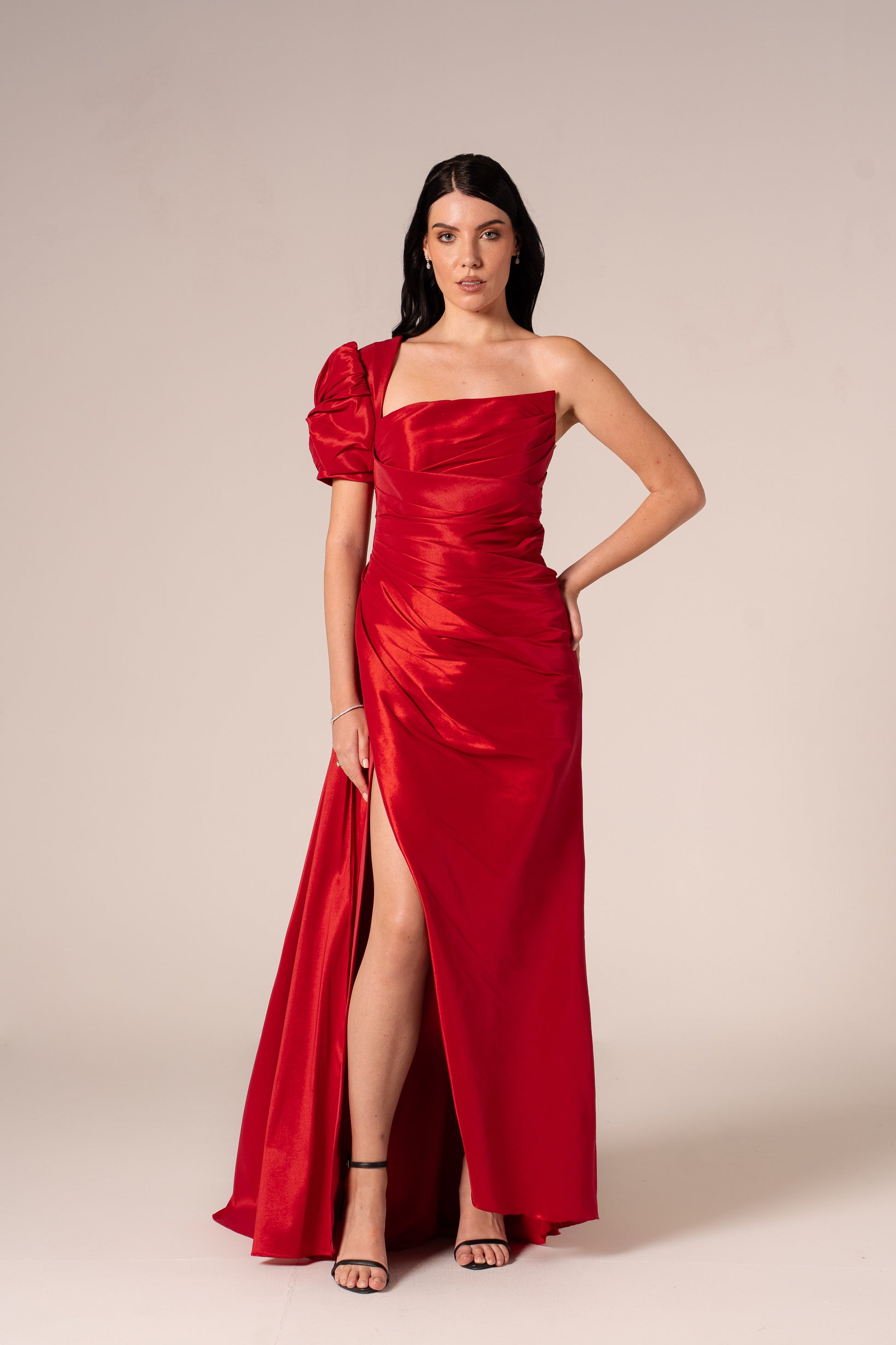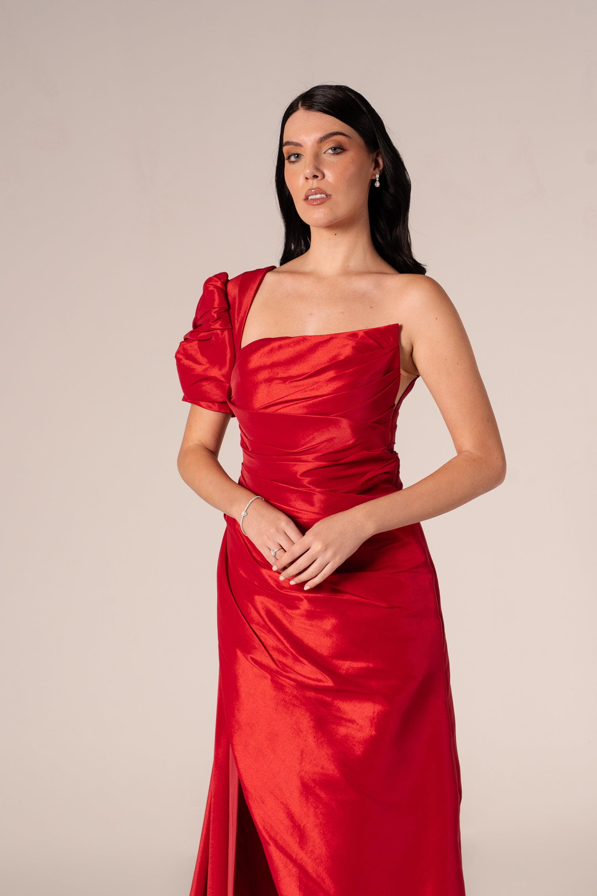 Elevate your evening elegance with Venetia, a stunning one-shoulder maxi dress designed to turn heads. The dramatic high slit adds movement and sophistication, while the asymmetrical neckline creates a flattering, modern silhouette. Crafted for those who dare to make a statement, this dress seamlessly transitions from formal events to upscale celebrations. The flowing maxi length ensures timeless glamour, while the strategic design details provide both comfort and confidence. Perfect for anyone seeking a show-stopping piece that balances classic refinement with contemporary allure.
